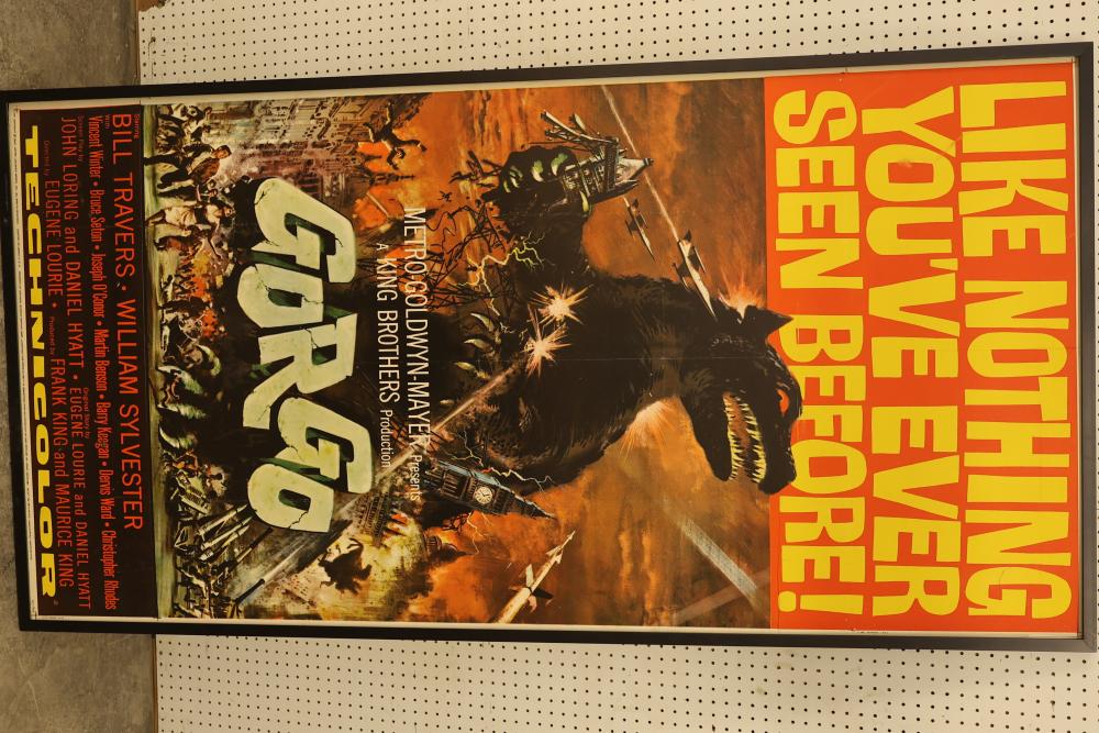 Framed Three-Sheet Vintage Gorgo Movie Poster Print. Measures 79.5 inches long, 41.5 inches wide. Includes some hardware on the back of the poster. Pickup only.