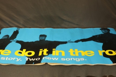 The Beatles 'Why Don't We Do It In The Road?' Promotional Poster. The poster measures approximately 144 inches long and 30 inches wide. It features bold text and imagery related to the Beatles anthology. Condition may feature signs of handling or age-related wear. Pickup only.