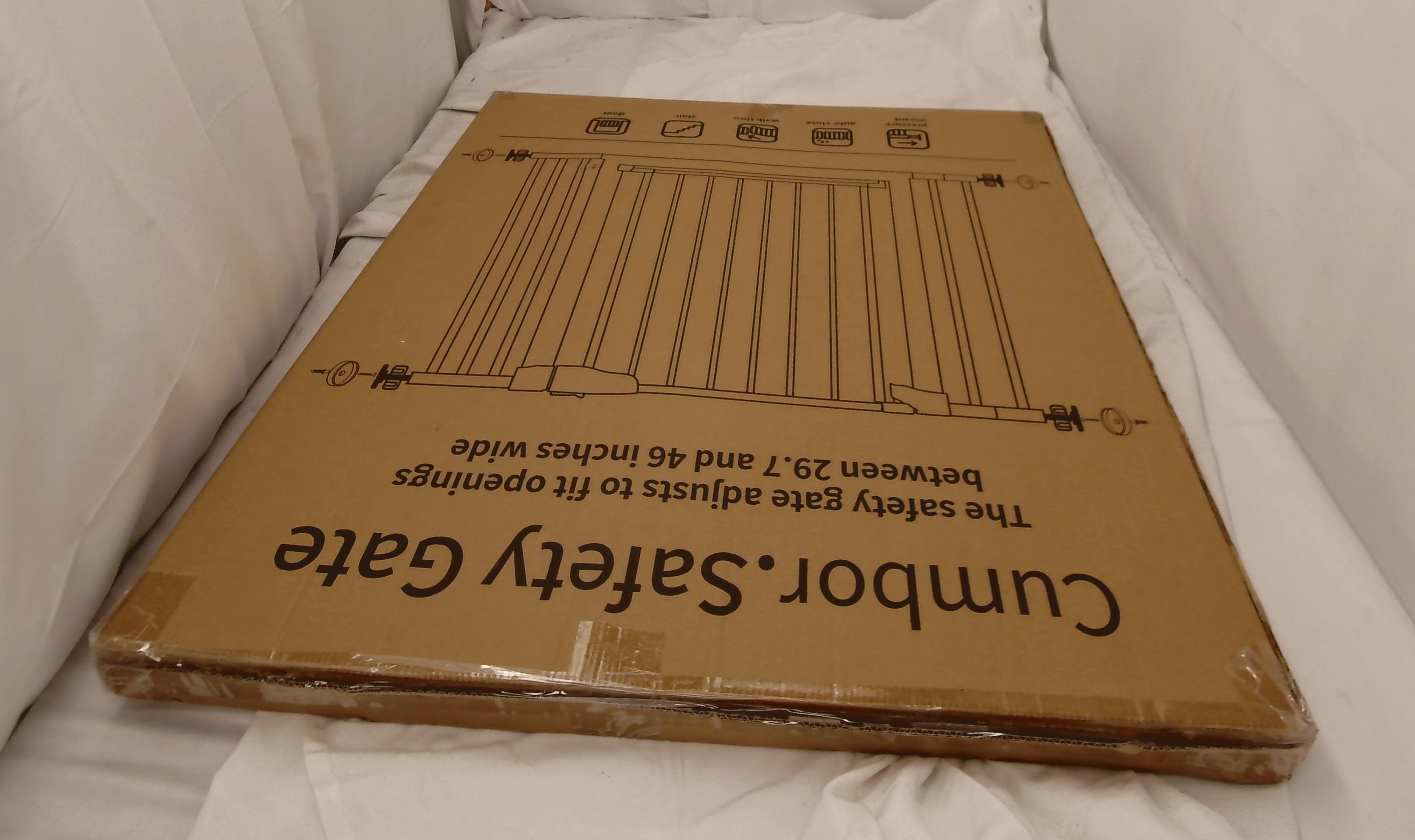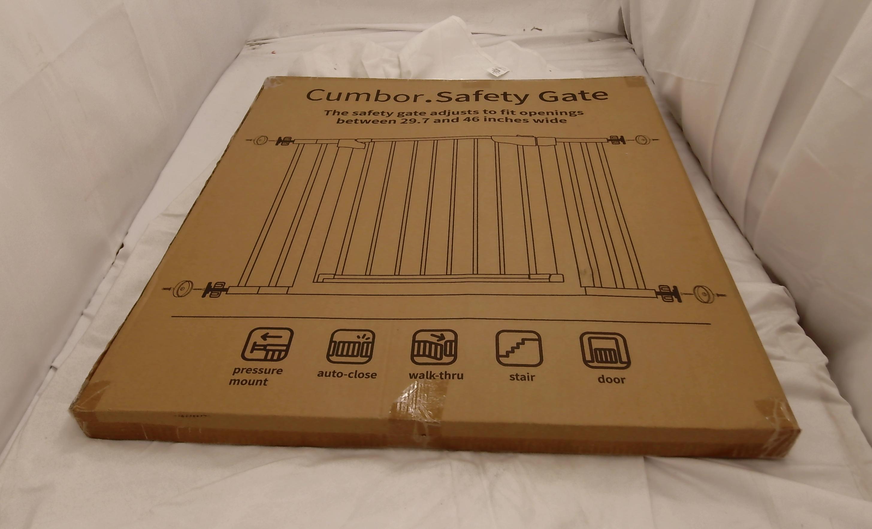 Cumbor 29.7-46" Baby Gate for Stairs, Toddler Safety Essentials for The House, Auto Close Dog Gate for Doorways, Mom's Choice Awards Winner-Easy Install Pressure Mounted Pet Gates for Dogs, White
