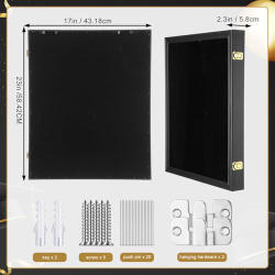 17x23 Large Shadow Box Picture Frame Display Case with Push Pins and Hanging Hardware, Ideal for Memorabilia Pictures Flowers Medals Tickets Rustic Black