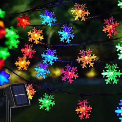 Dazzle Bright 100 LED Solar Christmas Snowflake Lights Outdoor, 39 FT Solar Powered Snowflake String Lights Waterproof for Xmas Tree, Holiday, Wedding Party, Patio Decorations (Multi Color)