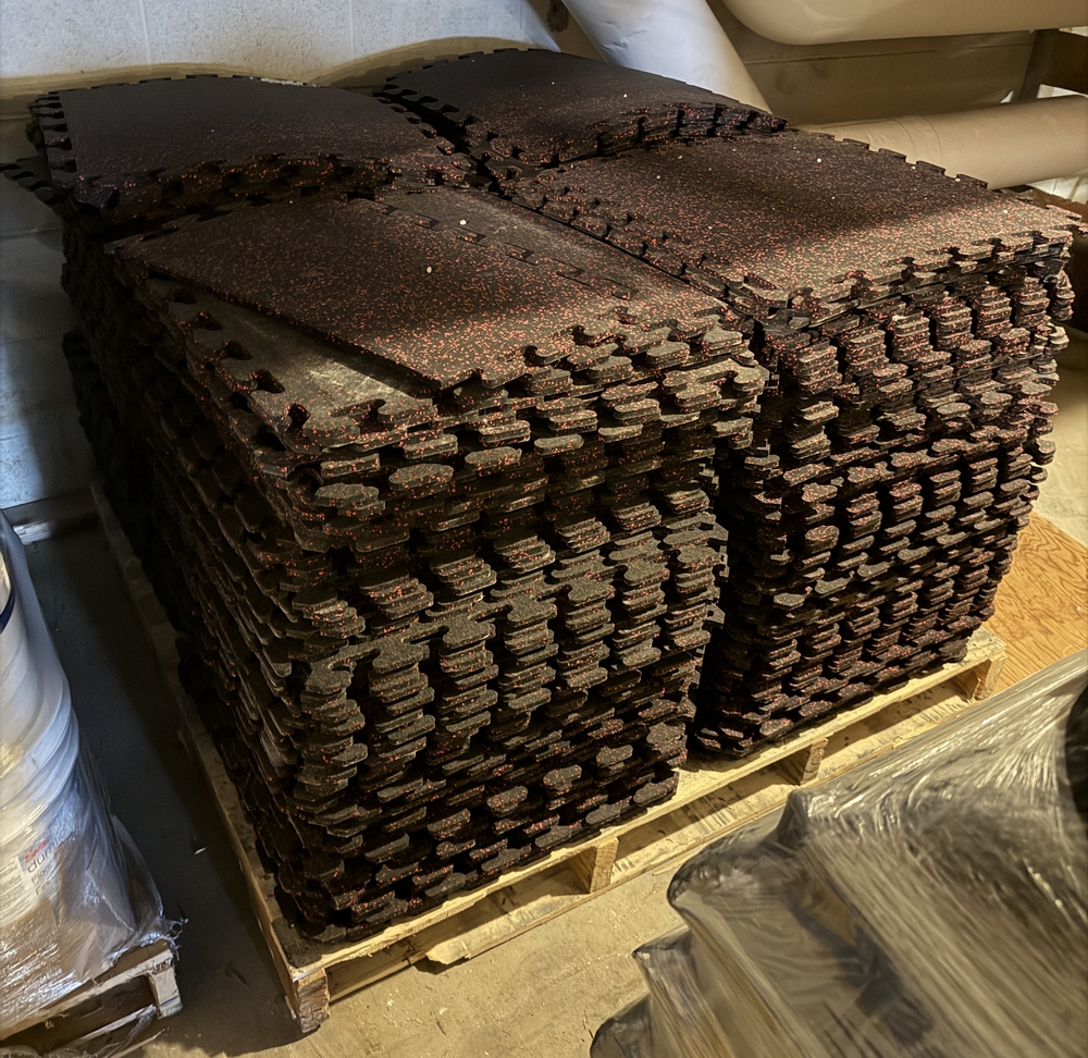 Rubber Floor Tiles; Used condition, 23"x23", came out of a 18'x30' room. No loading assistance on site, bring assistance as necessary.