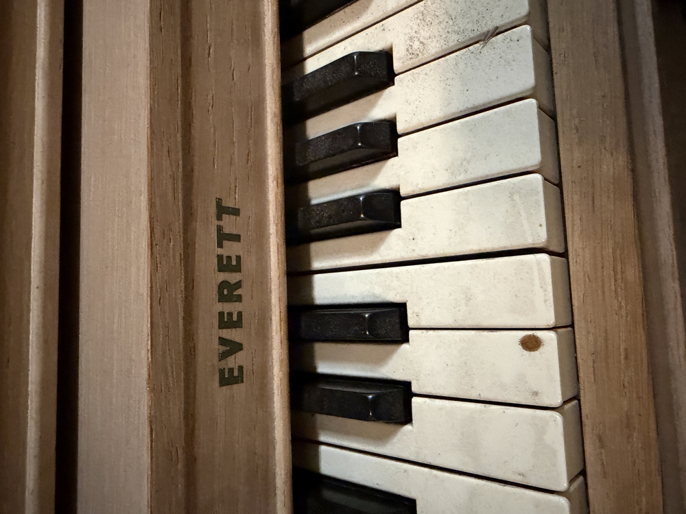 Everett Piano; Used condition, seller reports it probably will need a tune. Dolly under it does not come with it. No loading assistance on site, bring assistance as necessary.