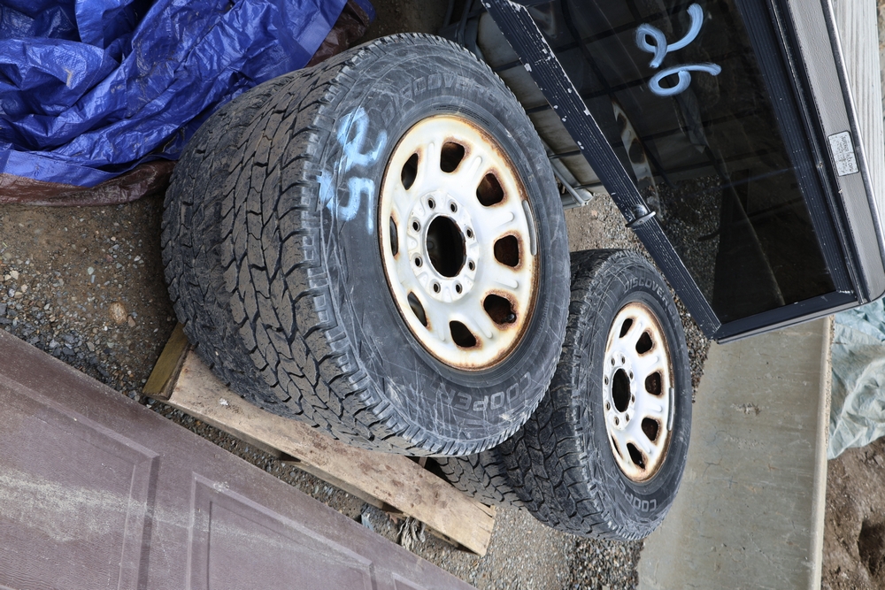 Four LT265/70R18 truck tires on steel rims, Cooper Discoverer HT3. Seller reports from GMC 3500.