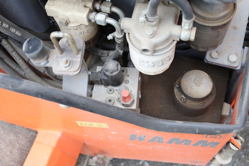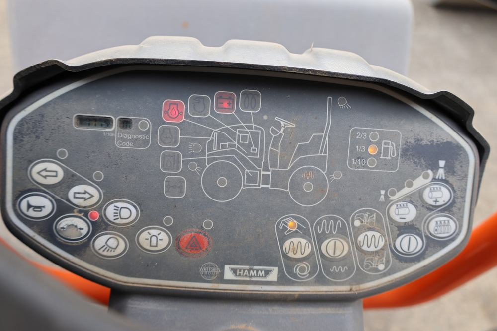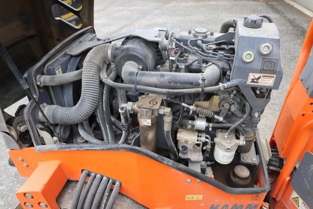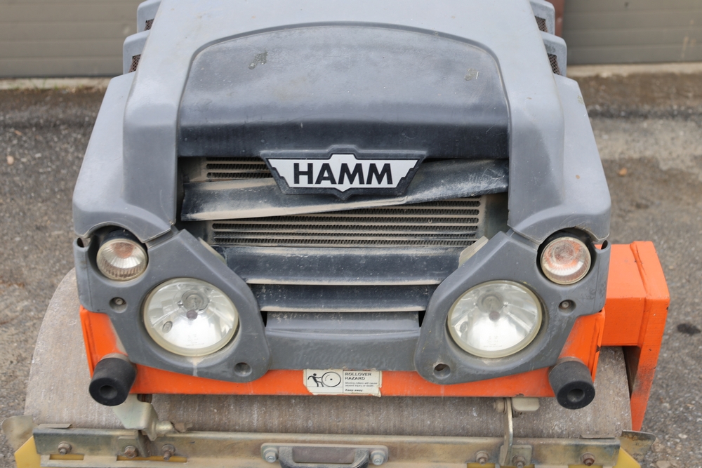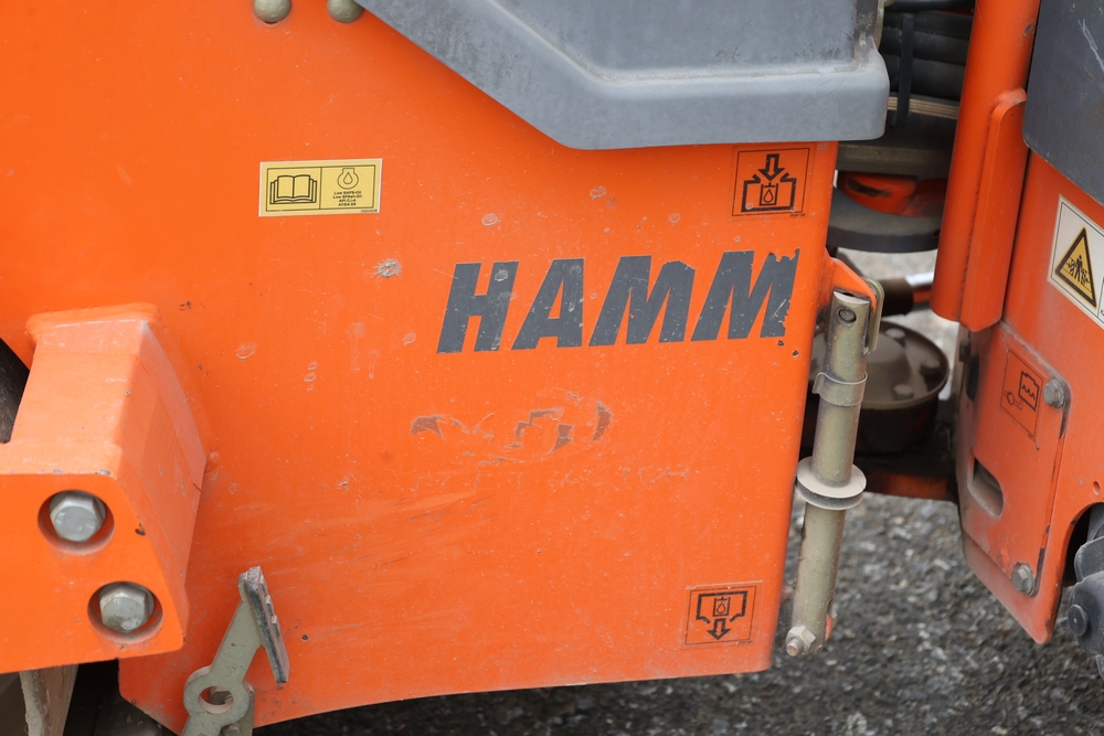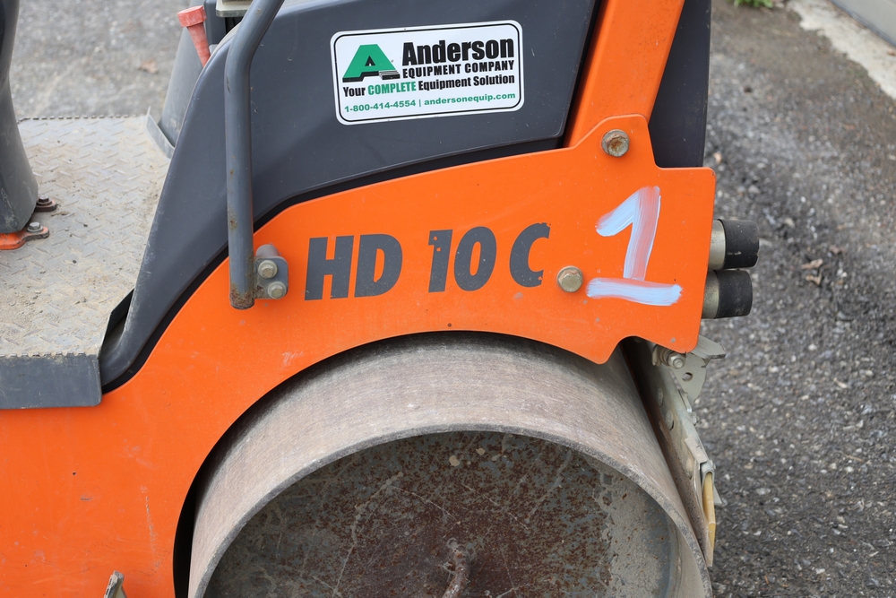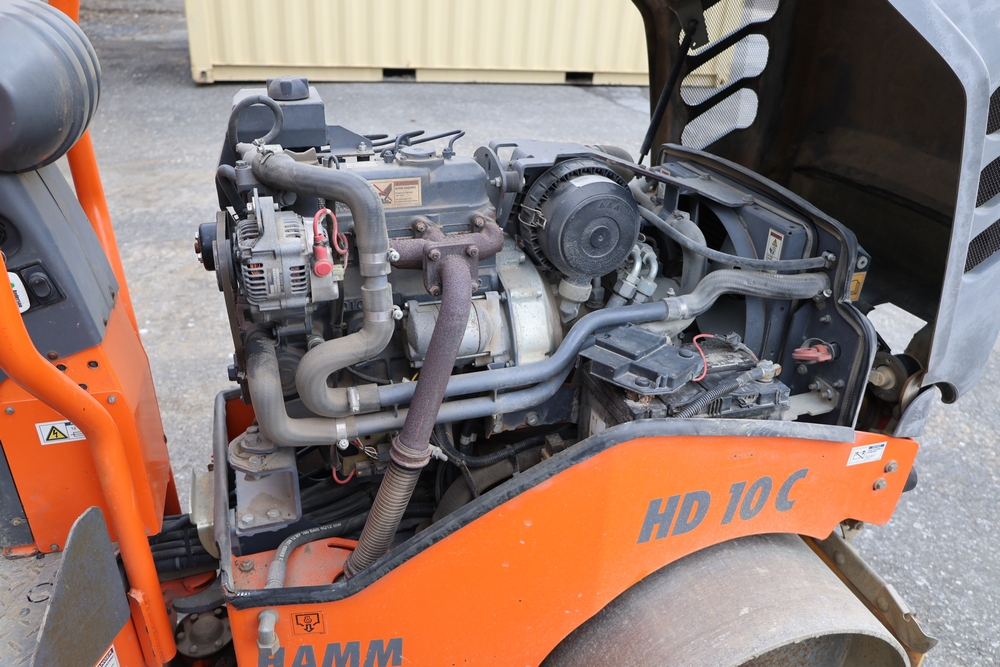 2013 Hamm HD 10 C tandem roller, model HD 10 C W, serial number H1991528, Kubota D1005 ET05 engine, open operator station with seat and control panel, dual steel drums. Runs and operates.