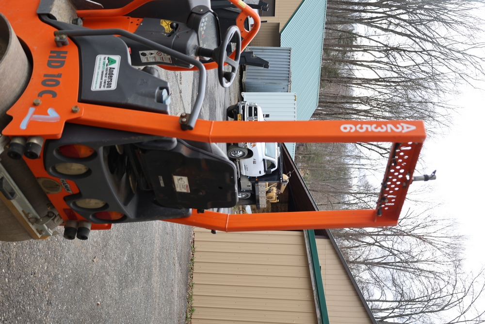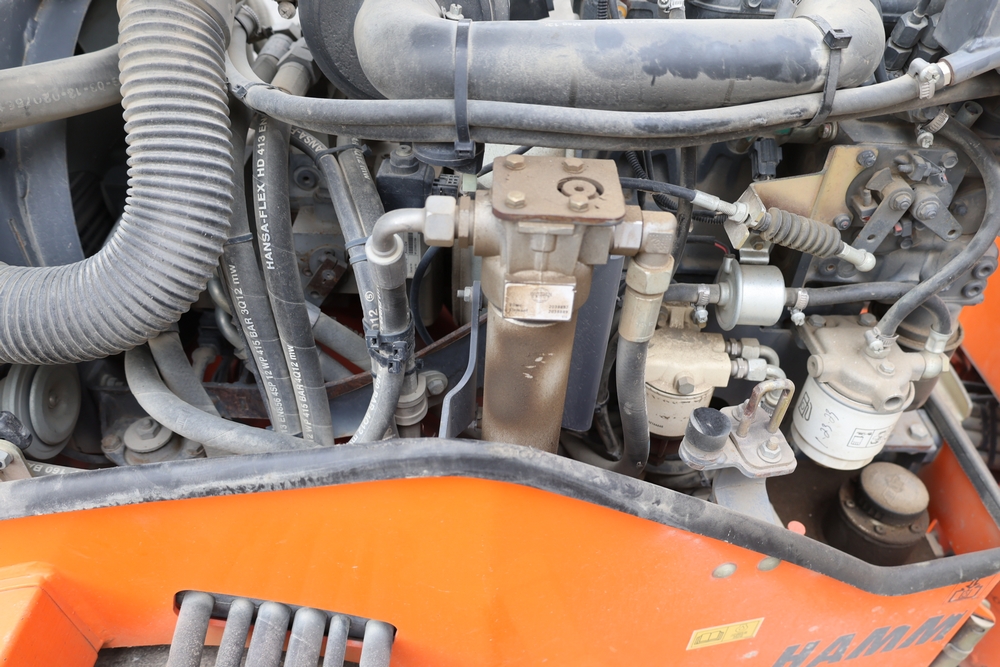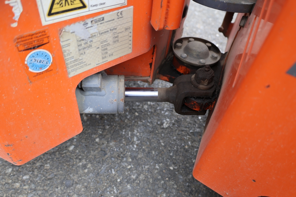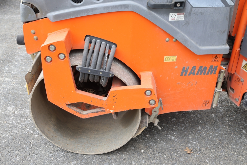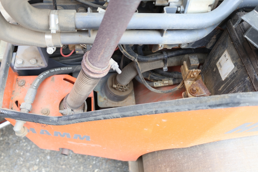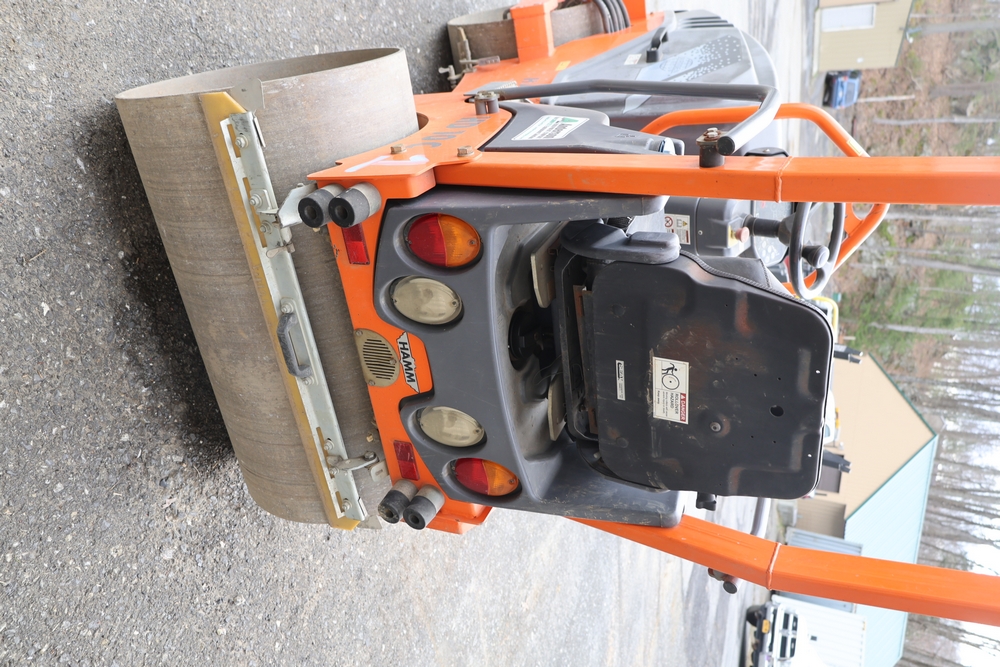 2013 Hamm HD 10 C tandem roller, model HD 10 C W, serial number H1991528, Kubota D1005 ET05 engine, open operator station with seat and control panel, dual steel drums. Runs and operates.