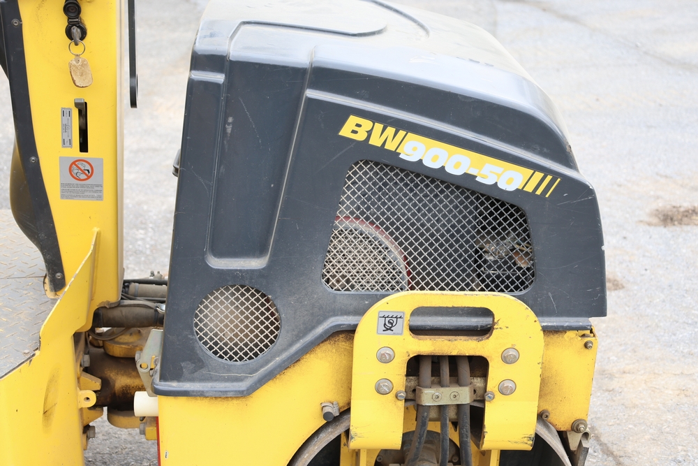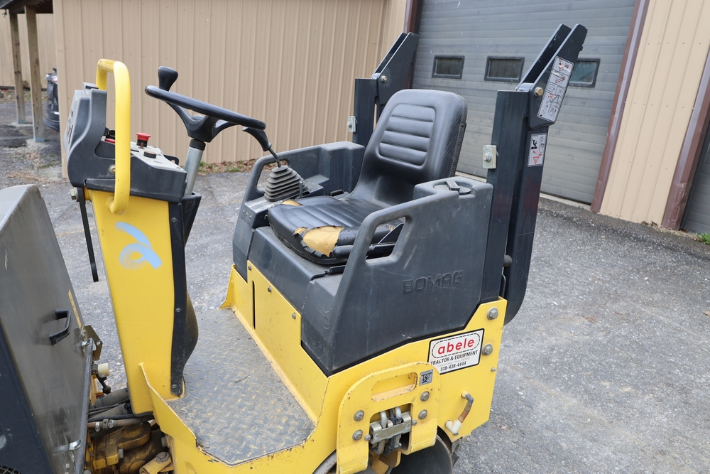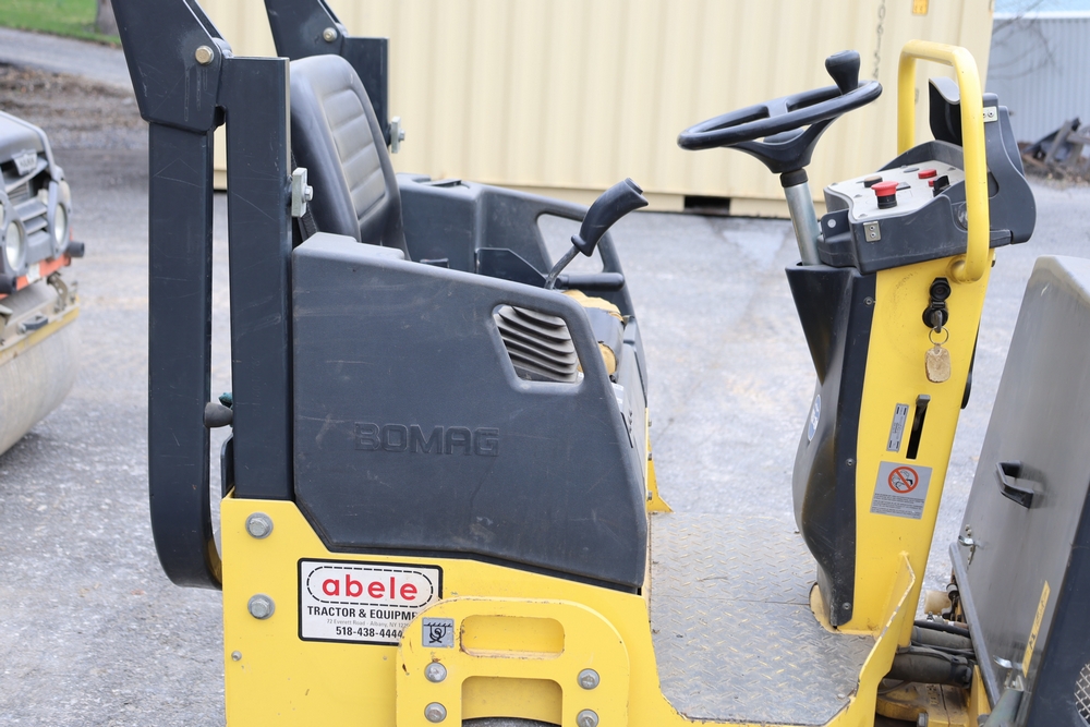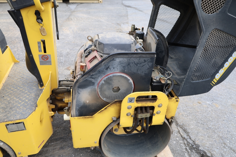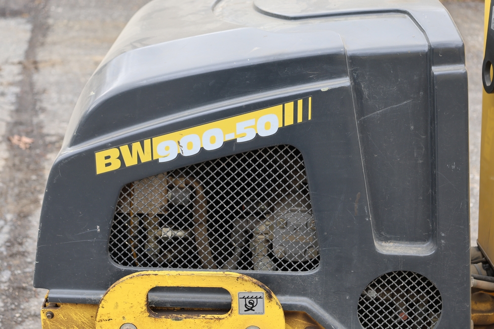 2011 Bomag BW900 50 tandem roller, serial number 881834071076, Honda engine, open operator station with seat and control panel, dual steel drums. Runs and operates.