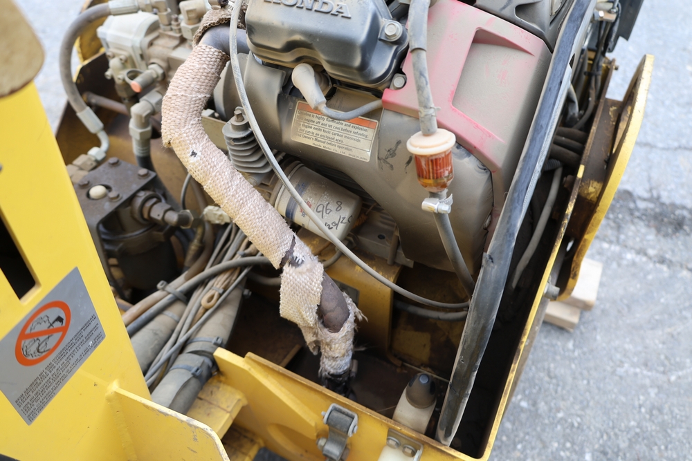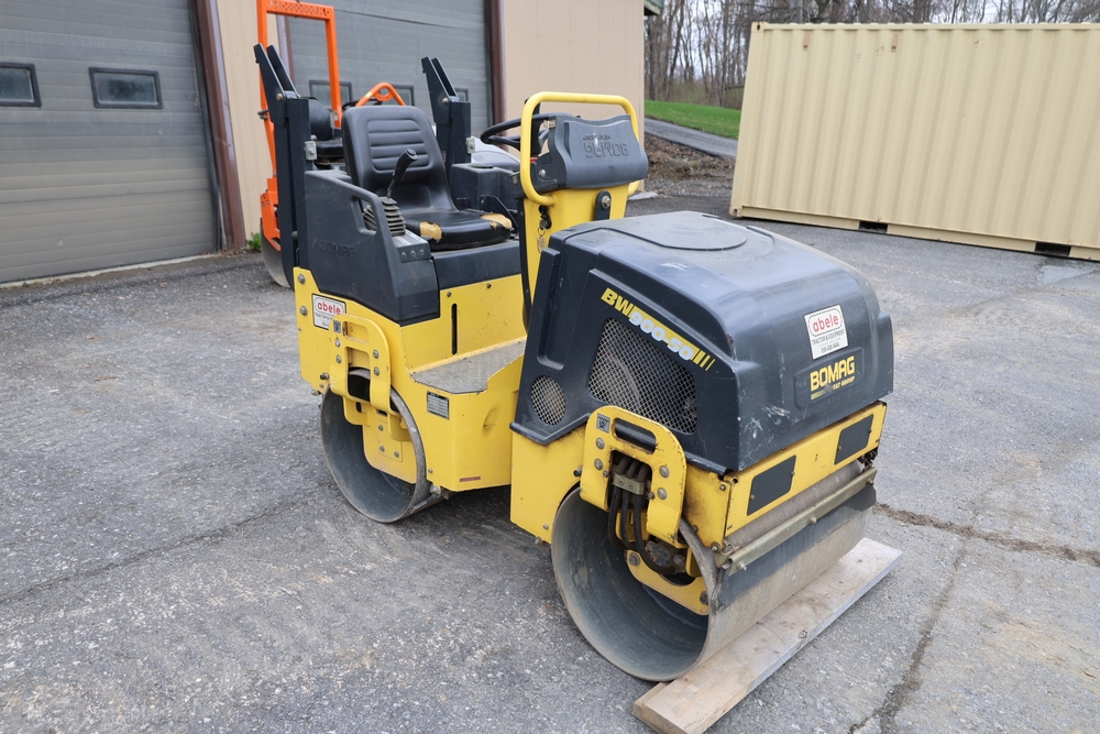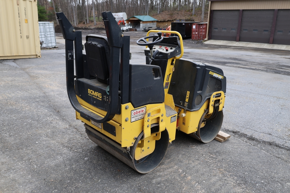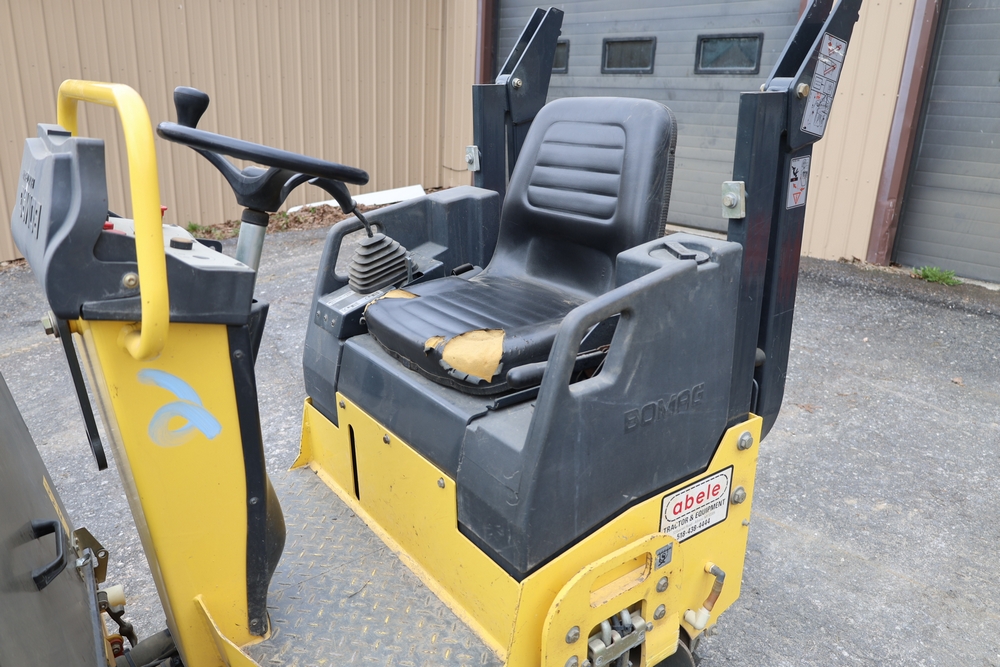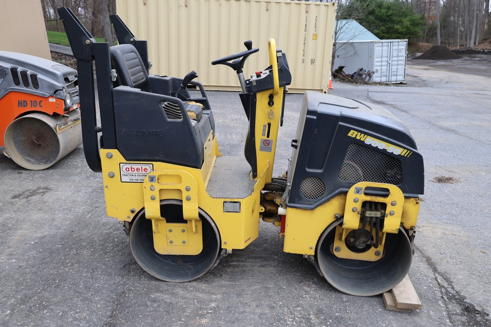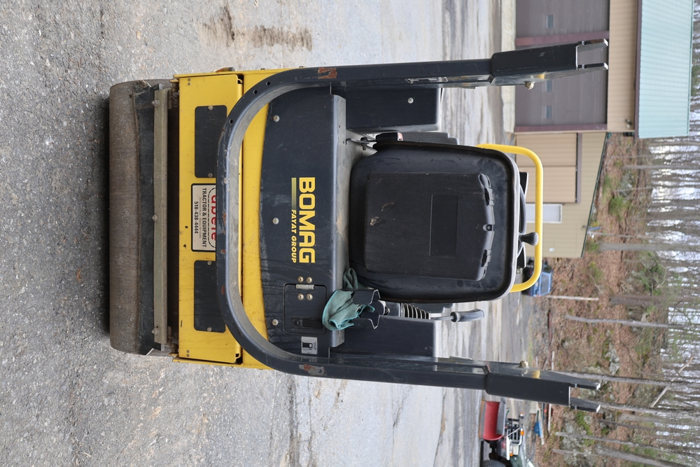 2011 Bomag BW900 50 tandem roller, serial number 881834071076, Honda engine, open operator station with seat and control panel, dual steel drums. Runs and operates.