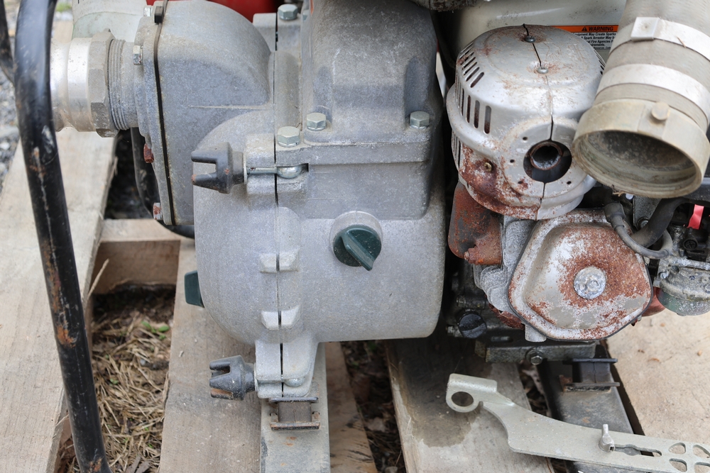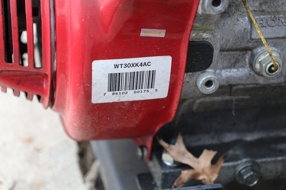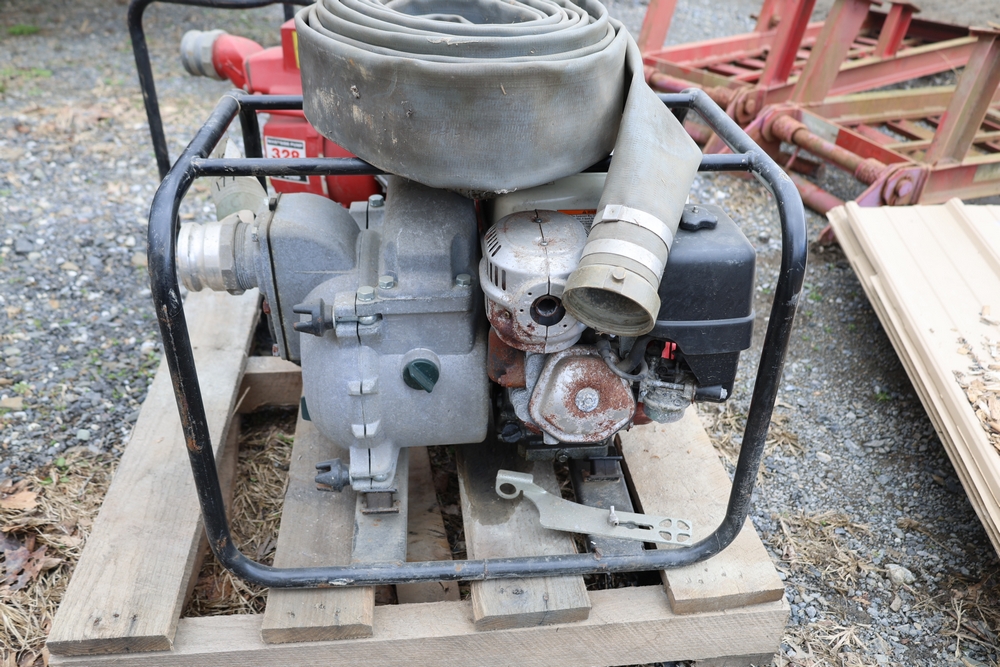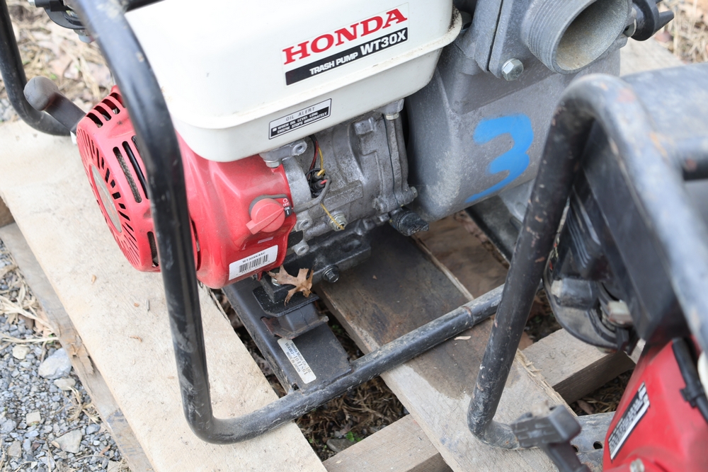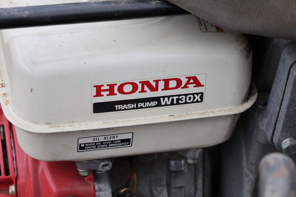 Honda WT30X trash pump, mounted in protective frame with one rolled hose attached. Seller reports: In working condition.