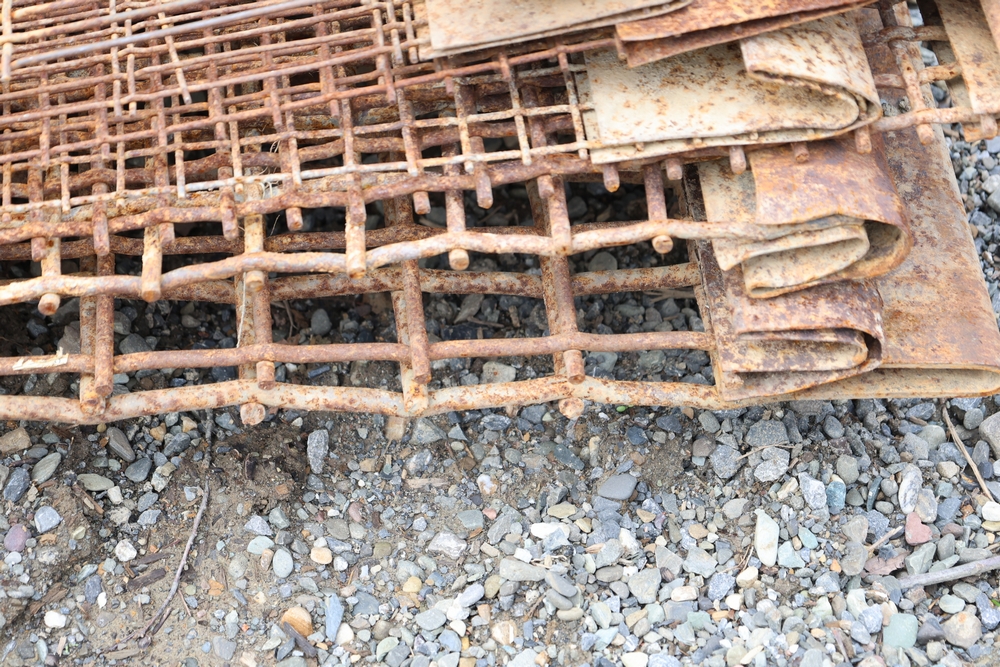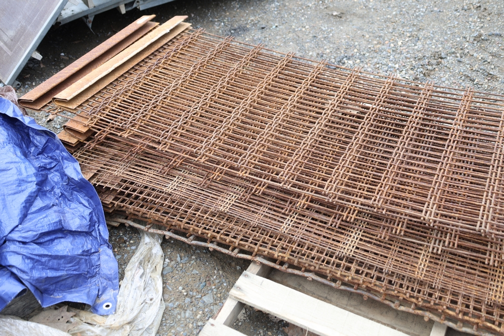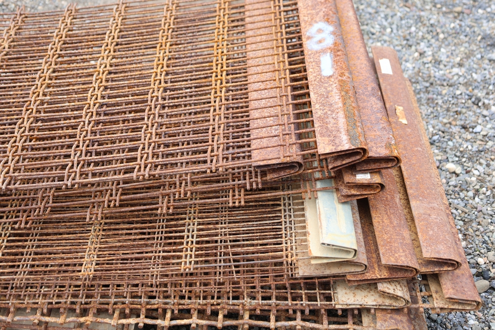 Stack of steel grating panels with welded wire grid construction; label indicates Eastern Processing Equipment with part number sm211A and size marked 83-3/4 in x 27-5/8 in; seller reports: for use with Extec screener.