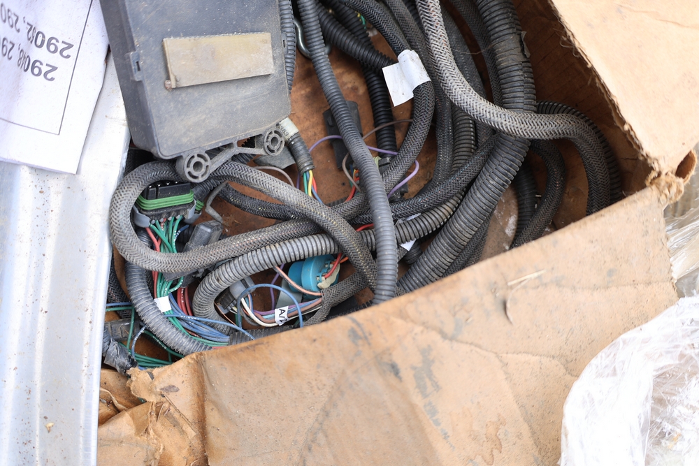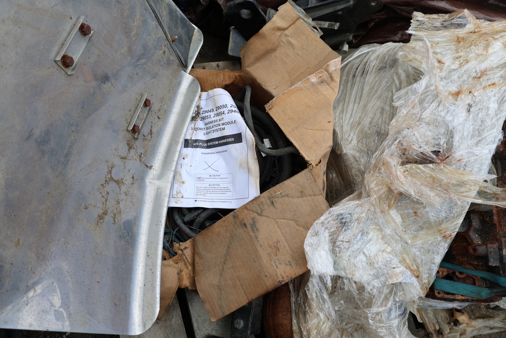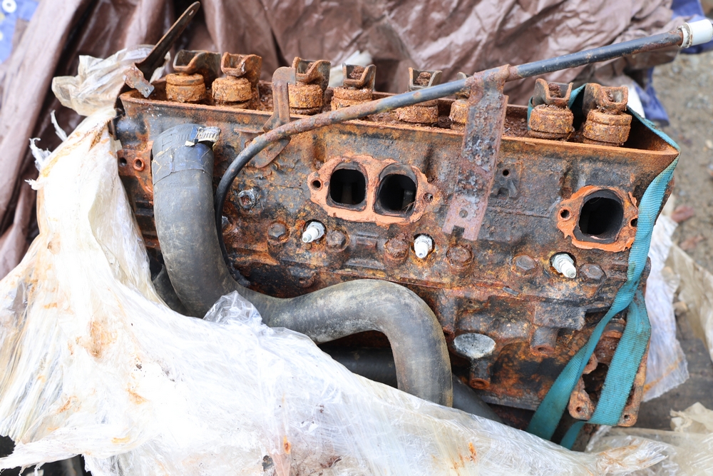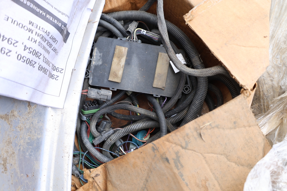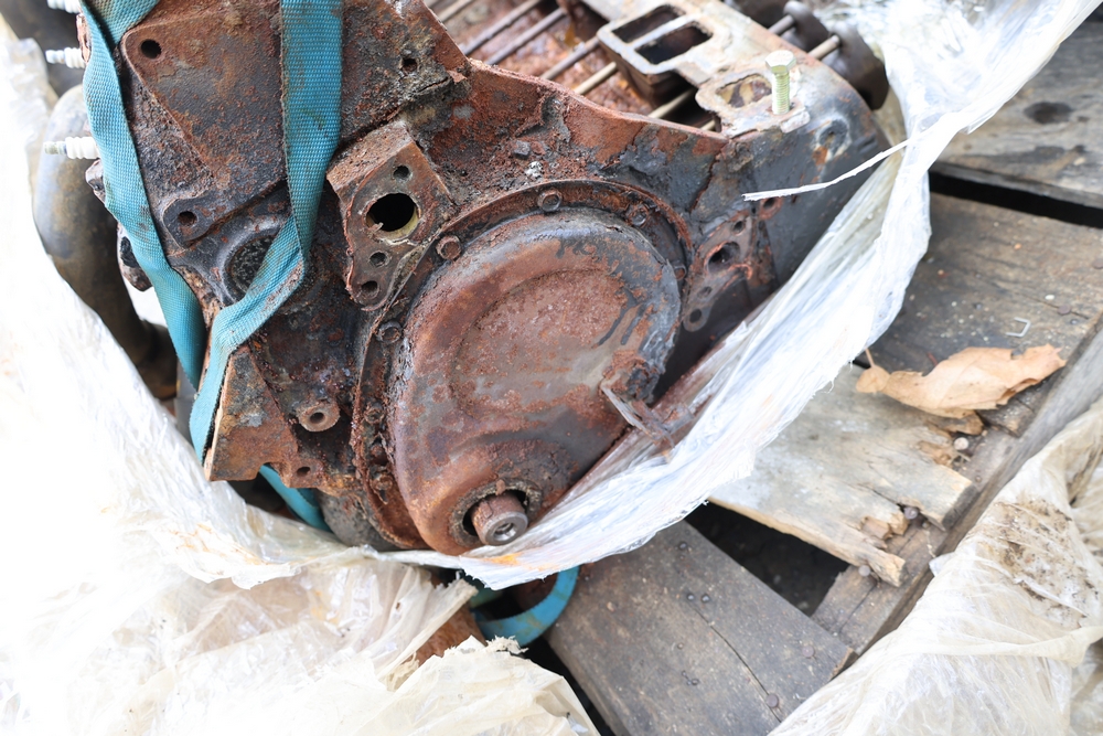 V-8 engine assembly, plow frame, wiring harness with isolation module, and pair of metal fenders; seller reports engine removed from 1987 Chevrolet with approximately 100,000 mile