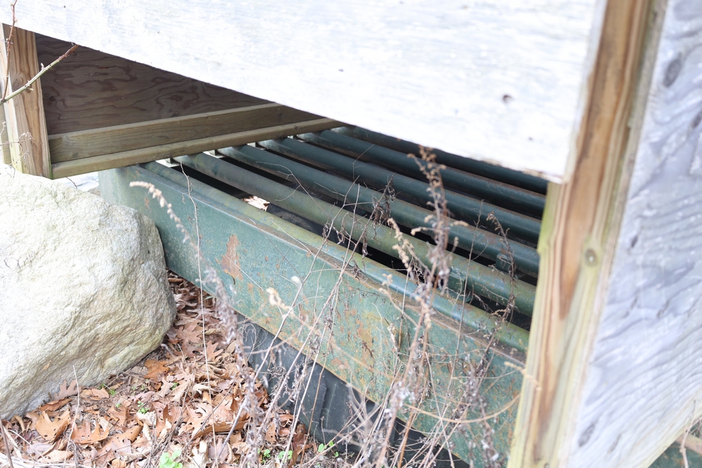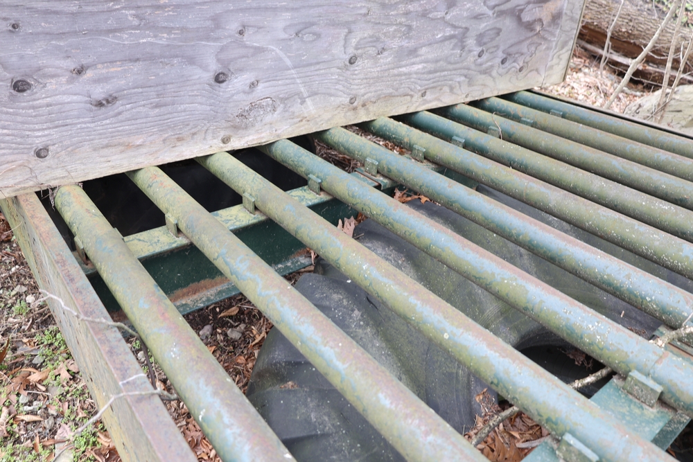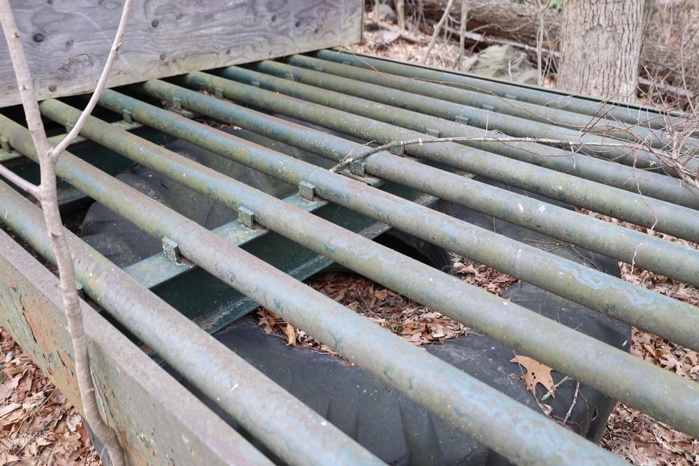 Steel cattle guard section with tubular bar top, approximately 16 ft long x 82 in wide.