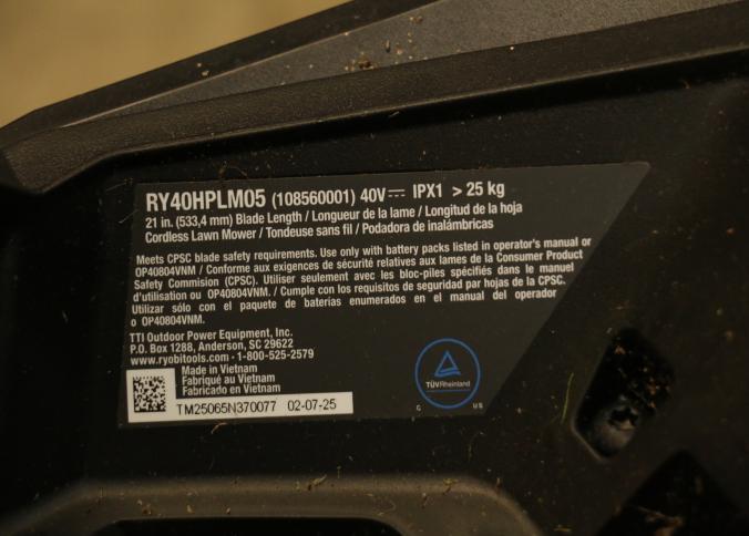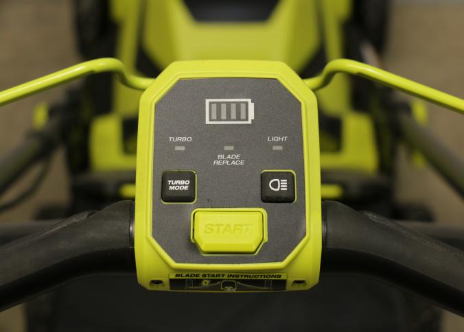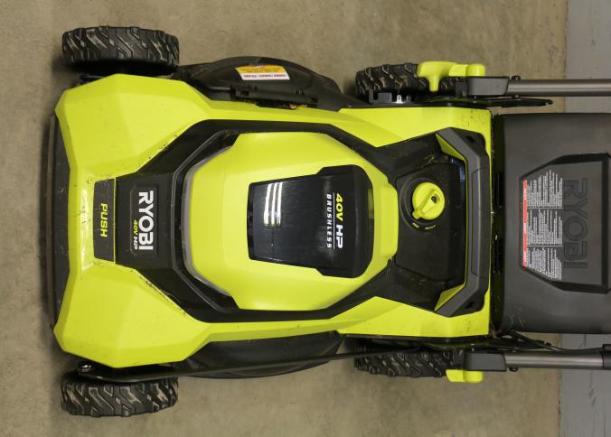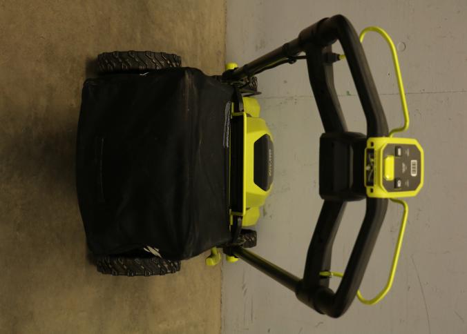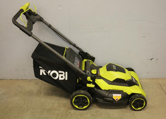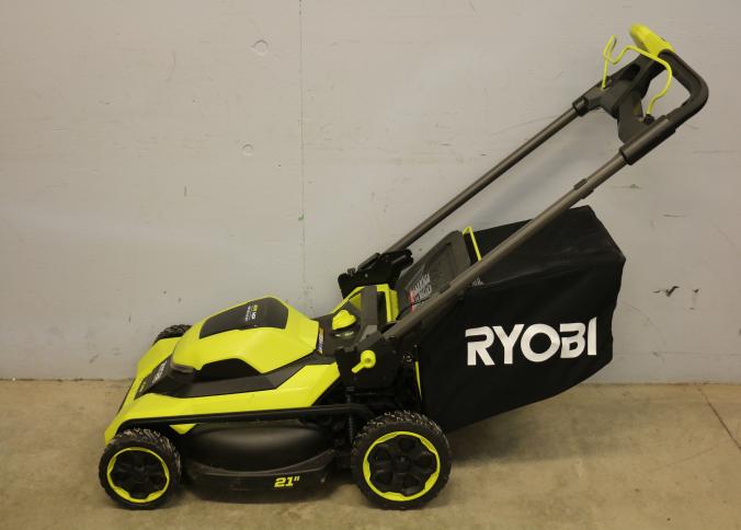 Ryobi 40V Cordless Lawn Mower, Model RY40HPLM05, with 21-inch blade. Features include turbo mode, blade replacement indicator, and integrated bag/mulch selector. Lightweight design and ergonomic handle for ease of use. Does not include 40V batteries. Pickup only.