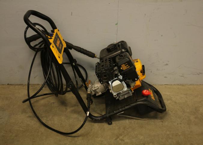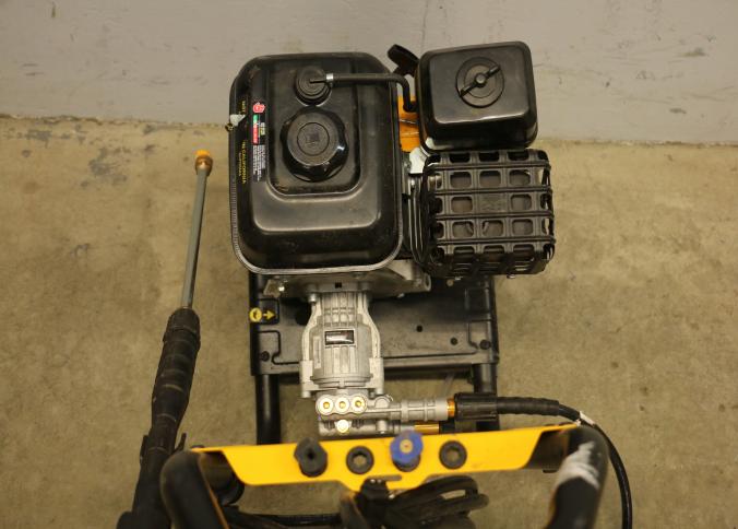 DeWalt 3400 PSI Gas-Powered Pressure Washer with Hose and Wand. Includes a gas engine and hose assembly designed for high-pressure water cleaning. The unit features a prominently labeled 3400 PSI rating on the frame. Wheels not included. Unit has compression but does not start. Pickup only.