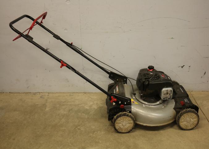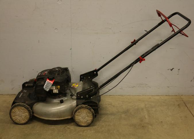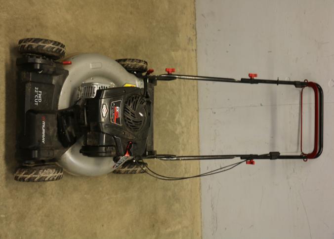 Murray 22-Inch Push Lawn Mower with Briggs & Stratton EX625 Engine. Features a 150cc engine with 6.25 ft-lbs gross torque. Equipped with forward drive, 22-inch steel cutting deck, and manual height-adjustable handle. Hardware not included. Unit has compression but does not start. Pickup only.
