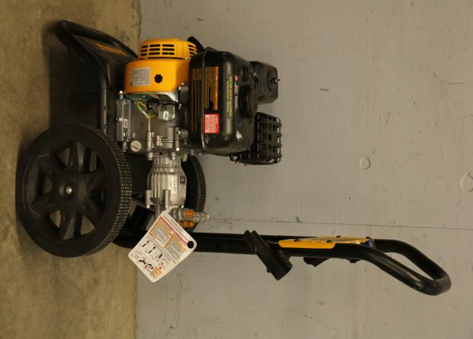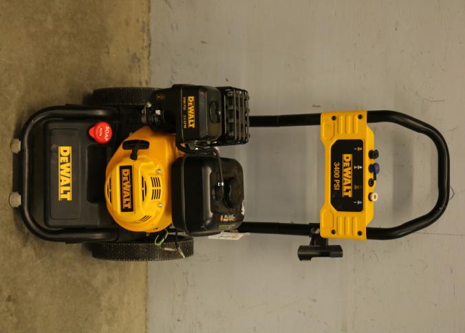 DeWalt DXPW61372 Cold Water Gas Pressure Washer, 3400 PSI. Powered by a gas engine, this pressure washer is rated for 2.5 GPM (gallons per minute) and 3400 PSI (pounds per square inch) for outdoor use. Features a durable frame with wheels for enhanced mobility. Hardware not included. Unit does not have compression and does not start. Pickup only.