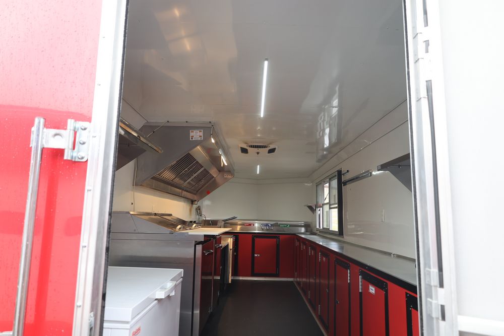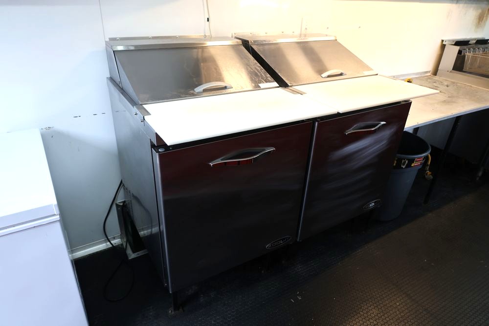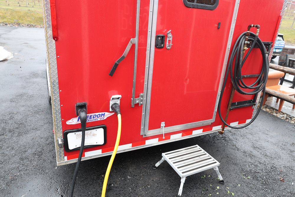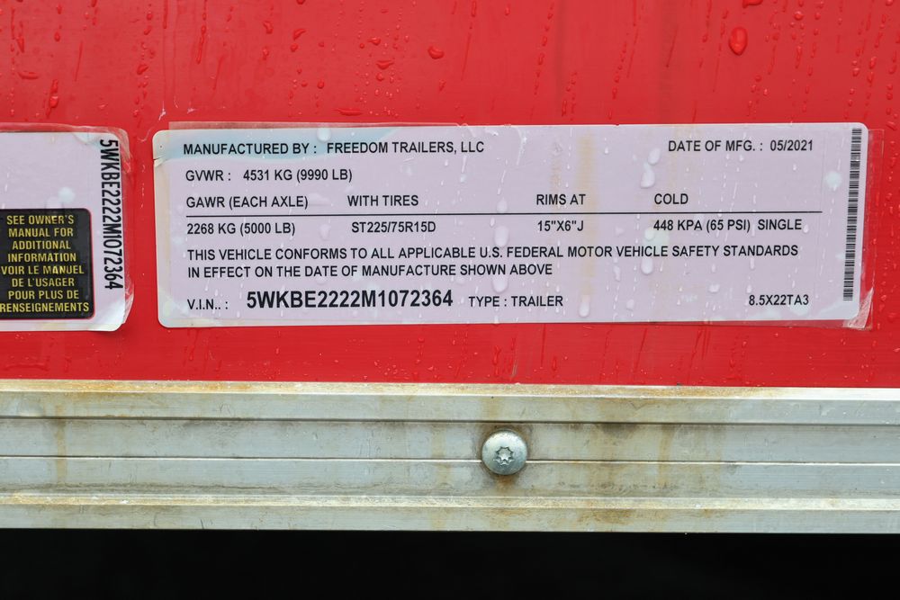 Freedom Trailers LLC tandem axle enclosed food service trailer, VIN 5WKBE2222M1072364. Has a service window, three compartment sink, handwash sink, stainless prep surfaces, Superior Hoods custom hood model CSS30-11, dual Cook Rite deep fryers with baskets, Kool-It refrigerated prep units model KST-27-1 with digital controls, Klinger’s Trading Inc stainless sink model MCS32D, Coleman Mach roof mounted unit, electrical panel with converter, & exterior power connections, GVWR 9990 lb, date of manufacturer 05/2021. Has title & bill of sale.