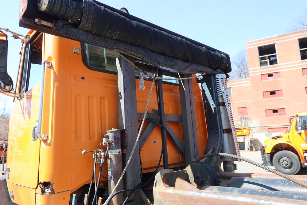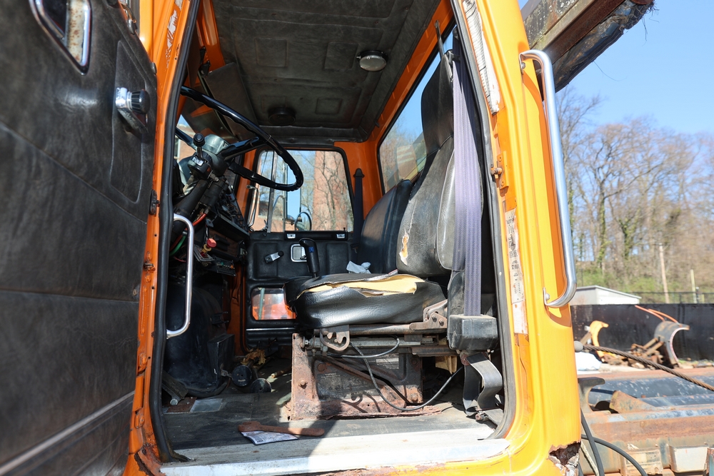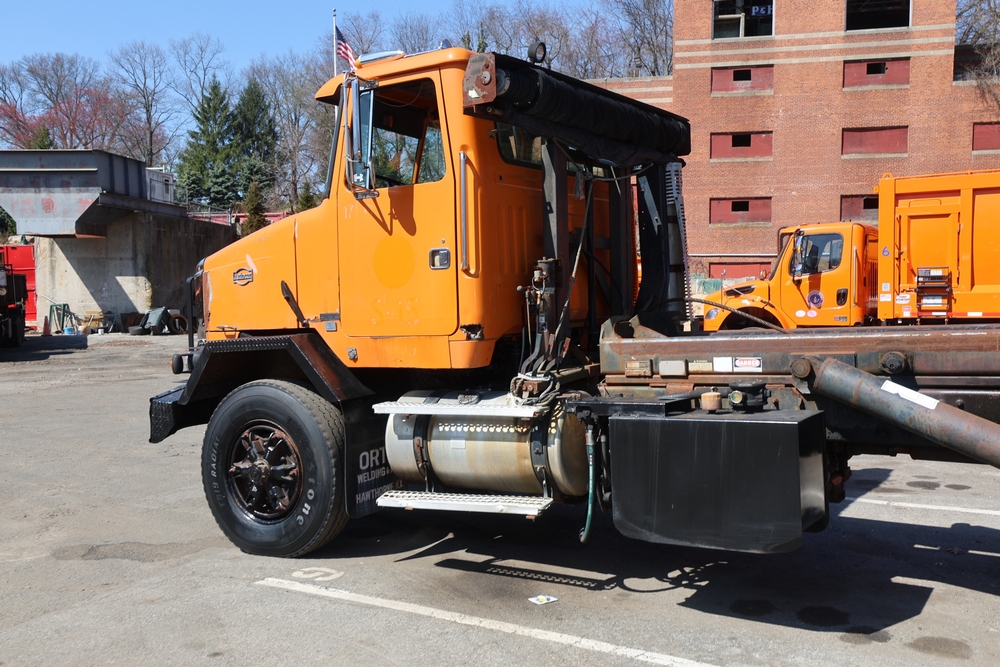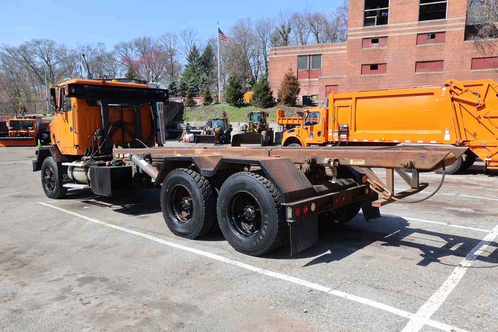 1990 White GMC ACL Roll-off Truck. VIN: 4V2SCBRF0LU506554. Body: Chassis 2D. Engine: DETROIT SERIES 60, 12.7L I6 DI Diesel. Odometer reading: 40638. Galbreath roll-off body. Seller reports: Runs, drives, small air leak/hydraulic leak. Title & key available.