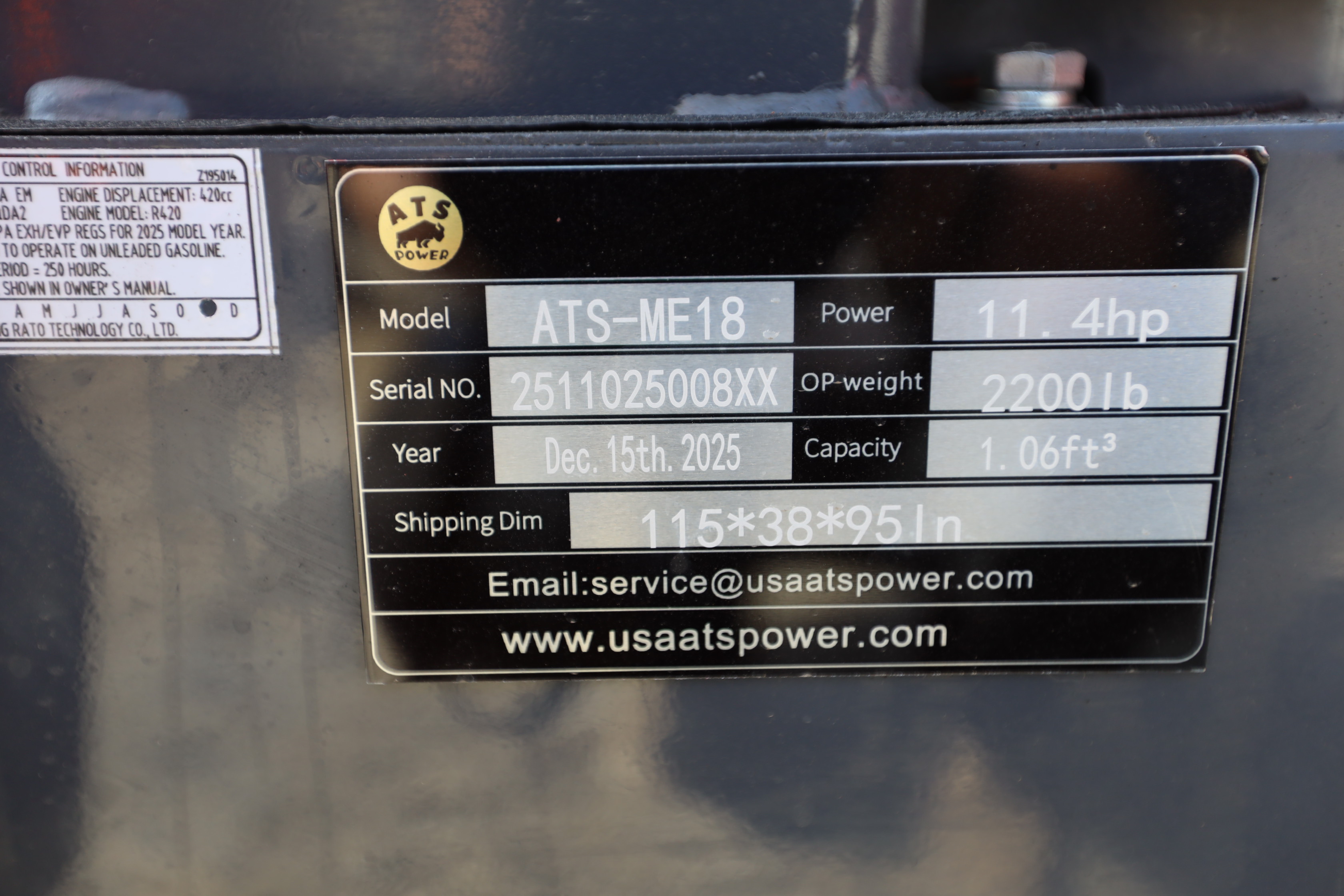 New 2026 ATS Power Mini Excavator, model: ATS-ME18 with pilot controls, dozer blade, bucket, and RATO420 gas engine. Hours reading less than 1 hour.