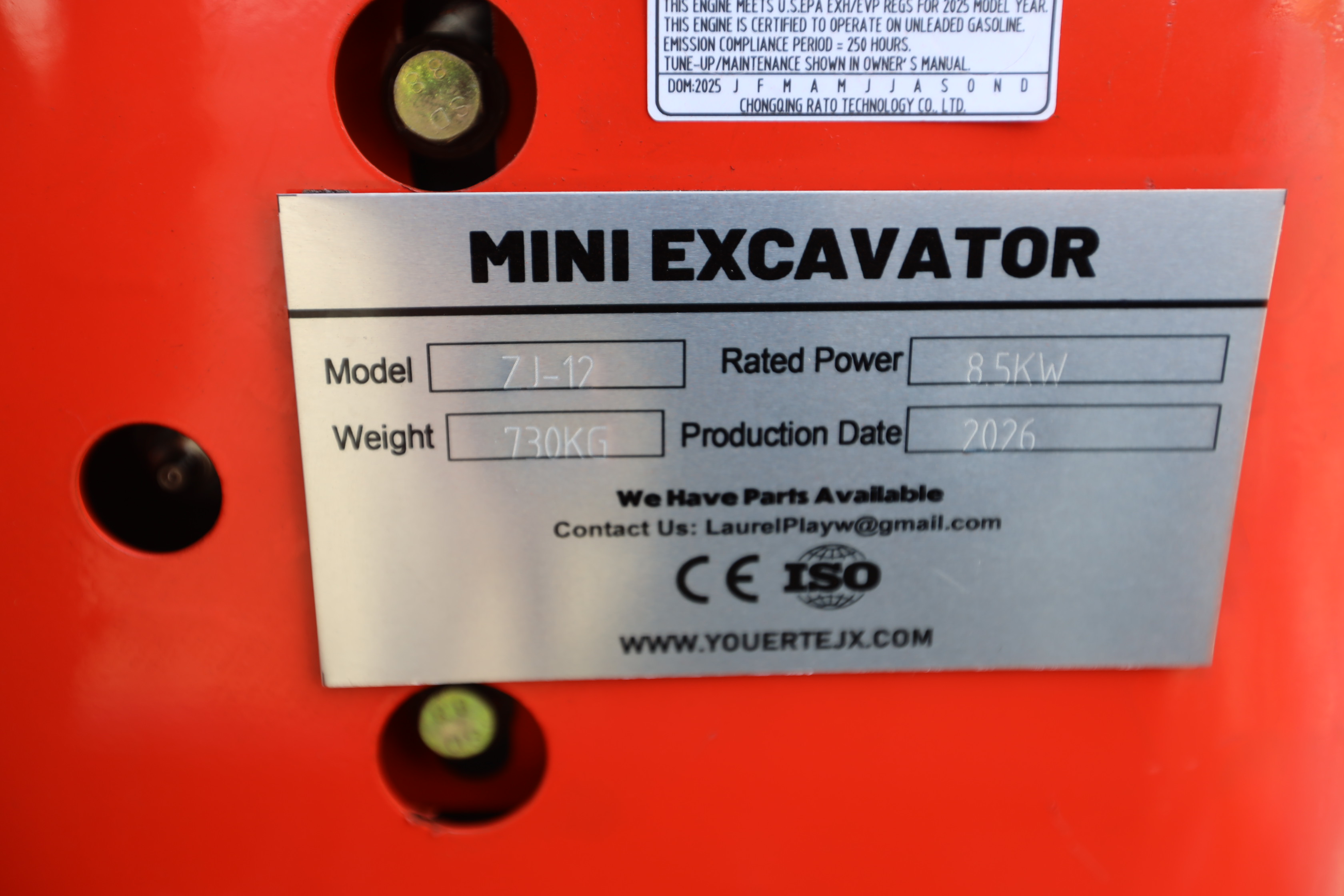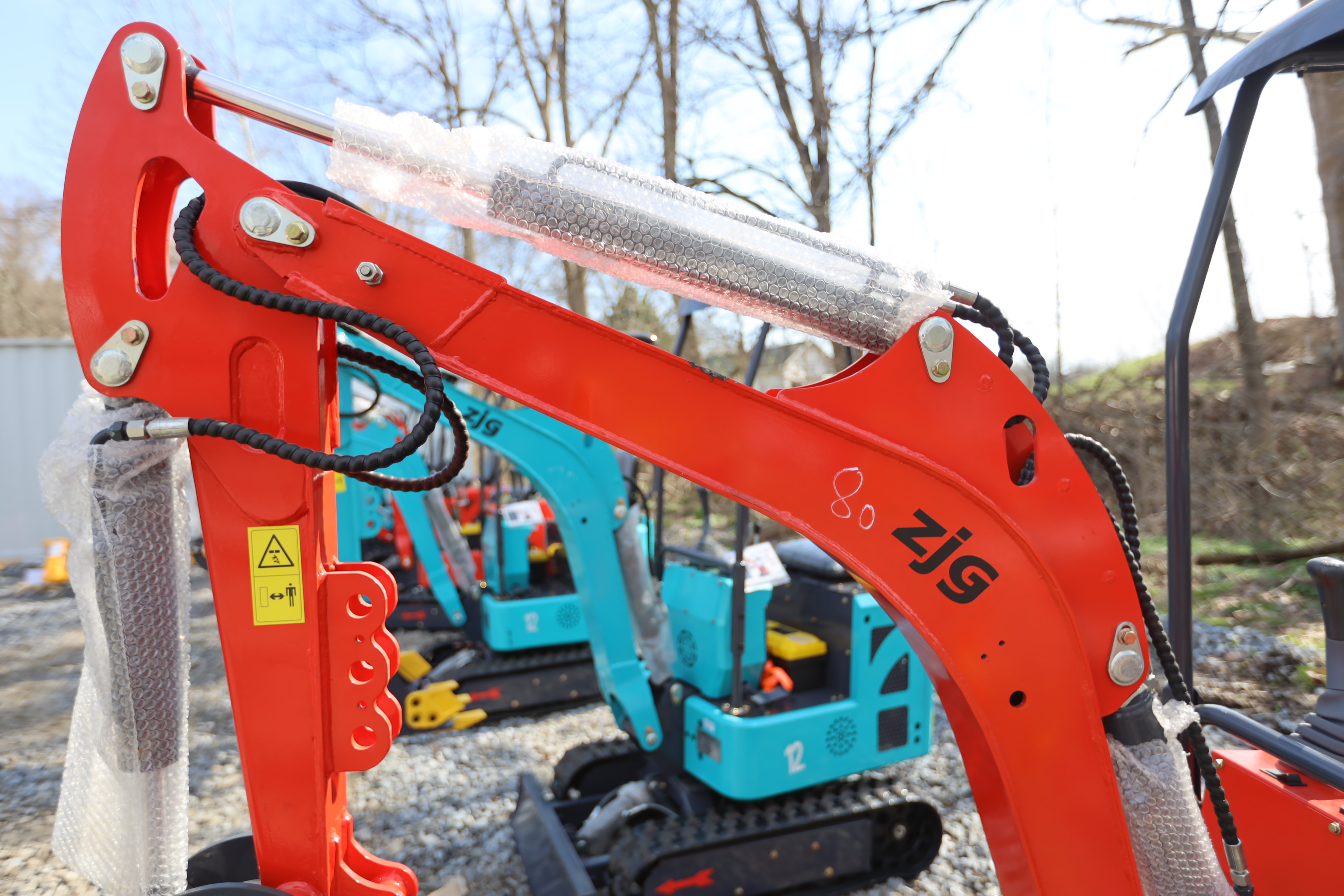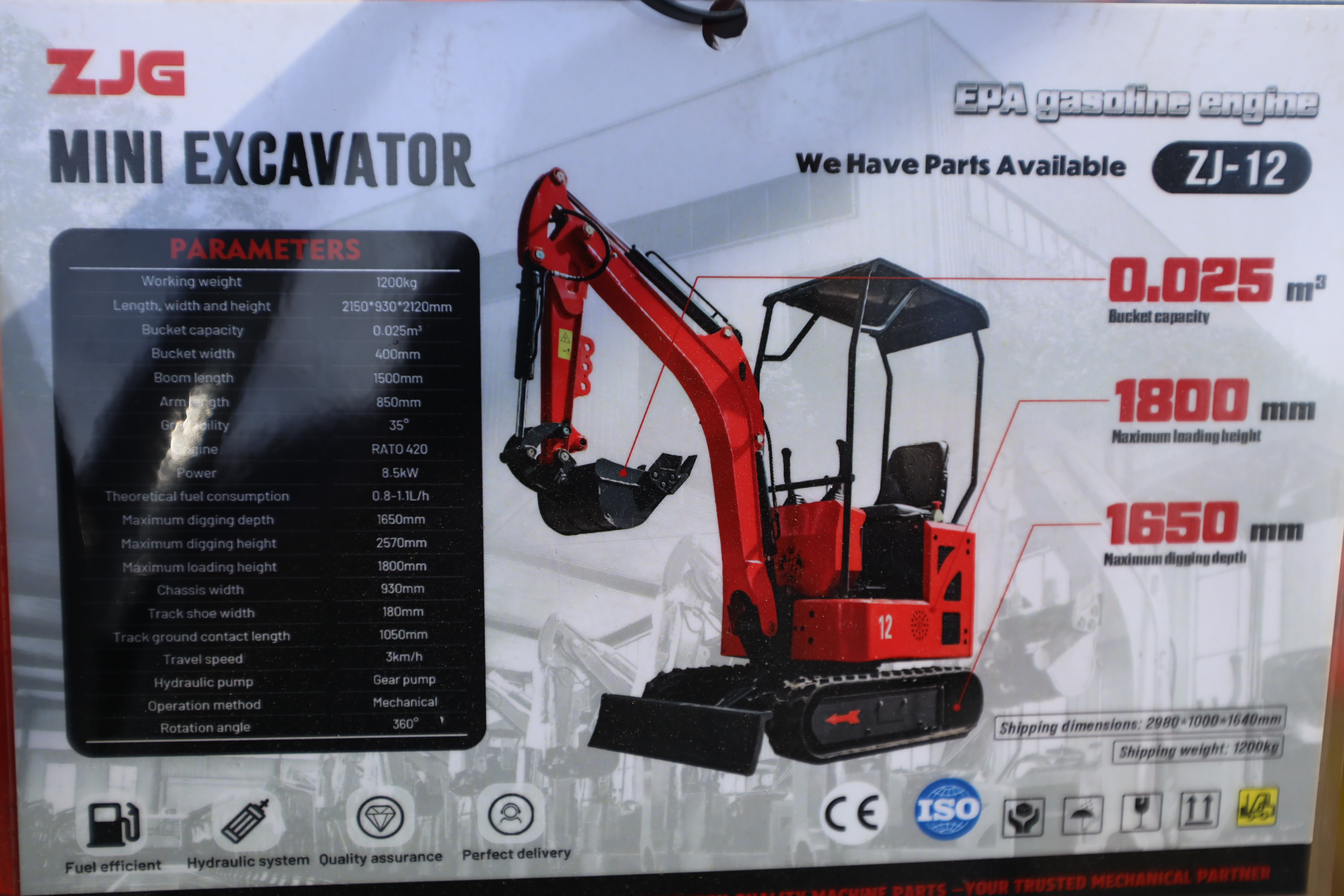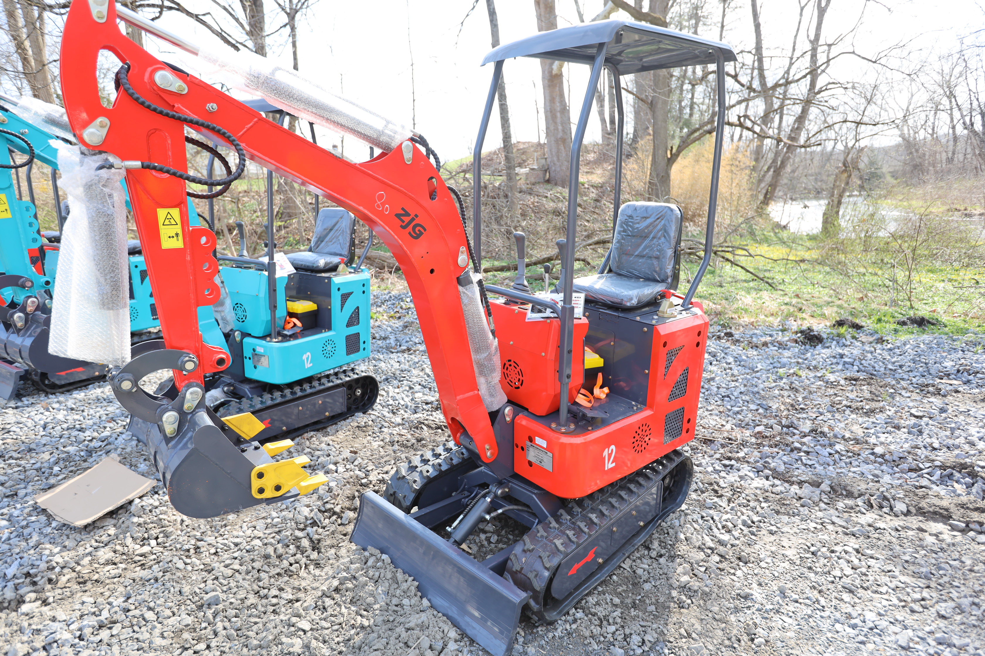 New 2026 ZJG Mini Excavator, model: ZJZ-12 with canopy, dozer blade, bucket, and gas engine. Hours reading less than 1 hour.
