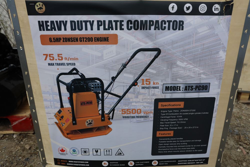 New 2026 ATS Power heavy duty plate compactor, model ATS-PC90, 6.5HP Zonzen GT200 engine.