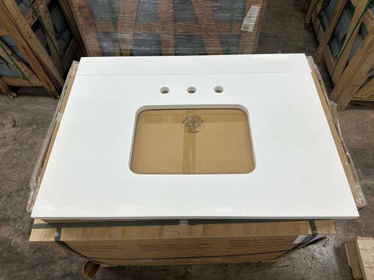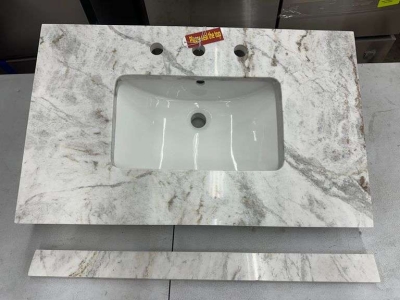 Granite Vanity Top 31"x19" with Undermount Sink. Colors May Slightly Vary, They are white and grey with a hint of tan speckle. Vanity Top Constructed Of Granite; Providing A Sturdy Feel And Clean Appearance, Has A Backsplash To Help Contain Any Messes, 8" Faucet Spread, DOES NOT Come With Faucet And Waste Assembly, Grade: A Weight: x. Sold by: Piece. Sold as: Price x Quantity.