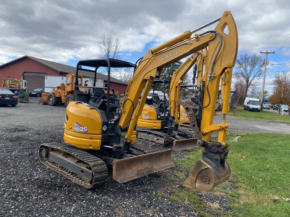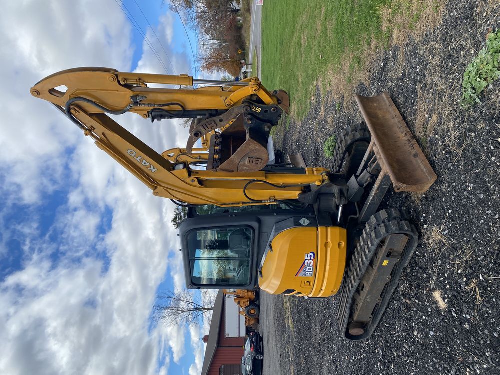 2019 Kato HD35 V4 Excavator, Serial #WF020366. Hours: 906. Appx weight 7,800 pounds, Yanmar Diesel, Open Station, Steel Tracks with Rubber Pads, WB coupler, WB 23" bucket, WB Hydro Thumb, Power Expandable Track Bottom. High Quality Machine made in Japan. Runs/Operates as intended, Ready for work. Sold on Bill of Sale.