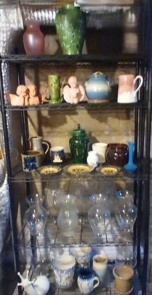 Crystal Bowls, Dishes, Vases, and Tableware Pieces. This set features a wide range of clear crystal tableware items including bowls, dishes, vases, and salt and pepper shakers. Some pieces are marked. The collection showcases detailed patterns and various designs throughout the assortment. Pickup only. Buyer must bring packing materials.