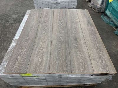 Grey 8mmx8"x48" Mixed Laminate Flooring. Unboxed, Approximately: 1300-1500 Square Foot, Grade: B *Condition Note: Some Edges may Be Damaged, Please See Photos* Weight: x. Sold by: Pallet. Sold as: Price x Quantity.